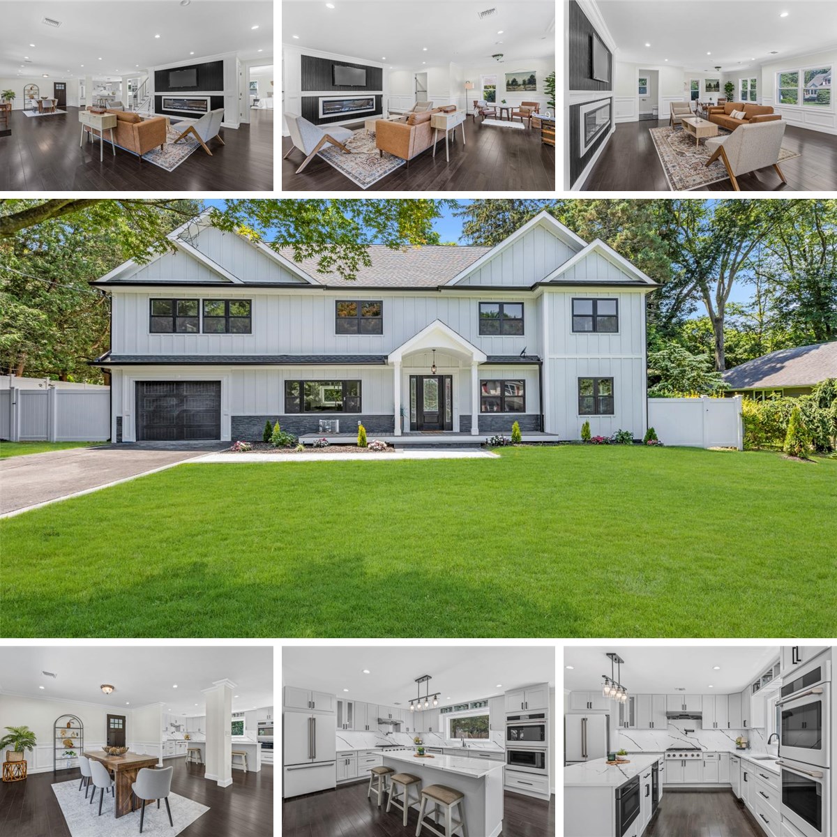 Curb appeal begins here on one of Huntington's prettiest streets,@ 15 Severin Place. A complete and total top-to-bottom renovation with Hardie plank exterior, black-framed Andersen windows, all-weather front porch accented by newly installed landscaping. Wide open floor plan, light-saturated and spacious with dark, 3/4" oak floors, recessed lighting and raised panel accents. The dining area looks over the current and well-planned custom eat-in kitchen. The quartz center island is substantial, has generous seating, GE Cafe series beverage refrigerator and microwave. Top-tier Cafe appliances include a double oven, a 5-burner gas range, and refrigerator. The breakfast area, large walk-in pantry and sliders to the deck abut the center island. The family room and dining room open to the EIK, all flow seamlessly, with walls of windows overlooking the front yard. This is a true open floor plan.