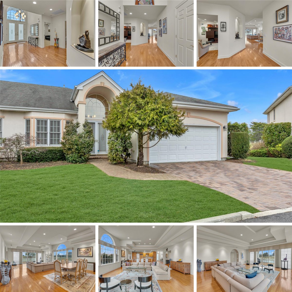The Greens at Half Hollow! Country Club Living at its finest! Nestled at the head of a serene cul-de-sac within Long Island’s most coveted 55+ gated enclave, this extraordinary Valencia Ranch commands one of the community’s most privileged settings — with sweeping, panoramic views of the golf course’s 18th hole. A rare offering where refined architecture and resort luxury meet in perfect harmony. A grand two-story entry sets the tone, opening to luminous, free-flowing interiors where walls of glass frame the lush contours of rolling greens, glistening ponds, and majestic fountains. With soaring 10+ foot ceilings there is an abundance of natural light thru-out the Dining, Living Room and Kitchen spaces, feeling both expansive and intimately connected to the magnificent landscape views from the walk-out deck and beyond. In the chef’s kitchen, form and function unite: custom cabinetry, polished granite surfaces, and a full suite of professional-grade stainless-steel appliances — Sub-Zero, Thermador, Bosch, and Jenn-Air — elevate every culinary experience. A gracious center island invites conversation and connection. Step into the warm and inviting Family Rm featuring custom built-ins and plenty of space for relaxing, entertaining or spending a cozy evening at home. The primary suite is a private sanctuary of sophistication, adorned with a striking tray ceiling, custom-fitted dual walk-in closets, and a spa-inspired bath featuring double vanities, soaking tub, and separate glass shower — all designed to frame tranquil views of the golf course just beyond your window. The versatile main-level guest suite or office offers its own sense of quiet luxury, while the incredible lower-level walk-out expands the home’s possibilities: a stylish media lounge, private office or den, generous bedroom suite, and seamless access to the verdant outdoors thru 2 double sliding doors. Refined details abound — gleaming hardwood floors, custom recessed lighting, whole house generator, central vacuum, gas hook-up for BBQ, deck awning and a two-car garage with ample storage. Beyond the home itself, The Greens at Half Hollow elevates every moment of life. The private clubhouse is a world unto itself — offering a fine-dining restaurant, lounges, fitness center, indoor and outdoor pools, tennis courts, and a vibrant calendar of social and cultural clubs. Security is assured with 24/7 gated and attended entrances. Effortless elegance. Endless views. A life without compromise.