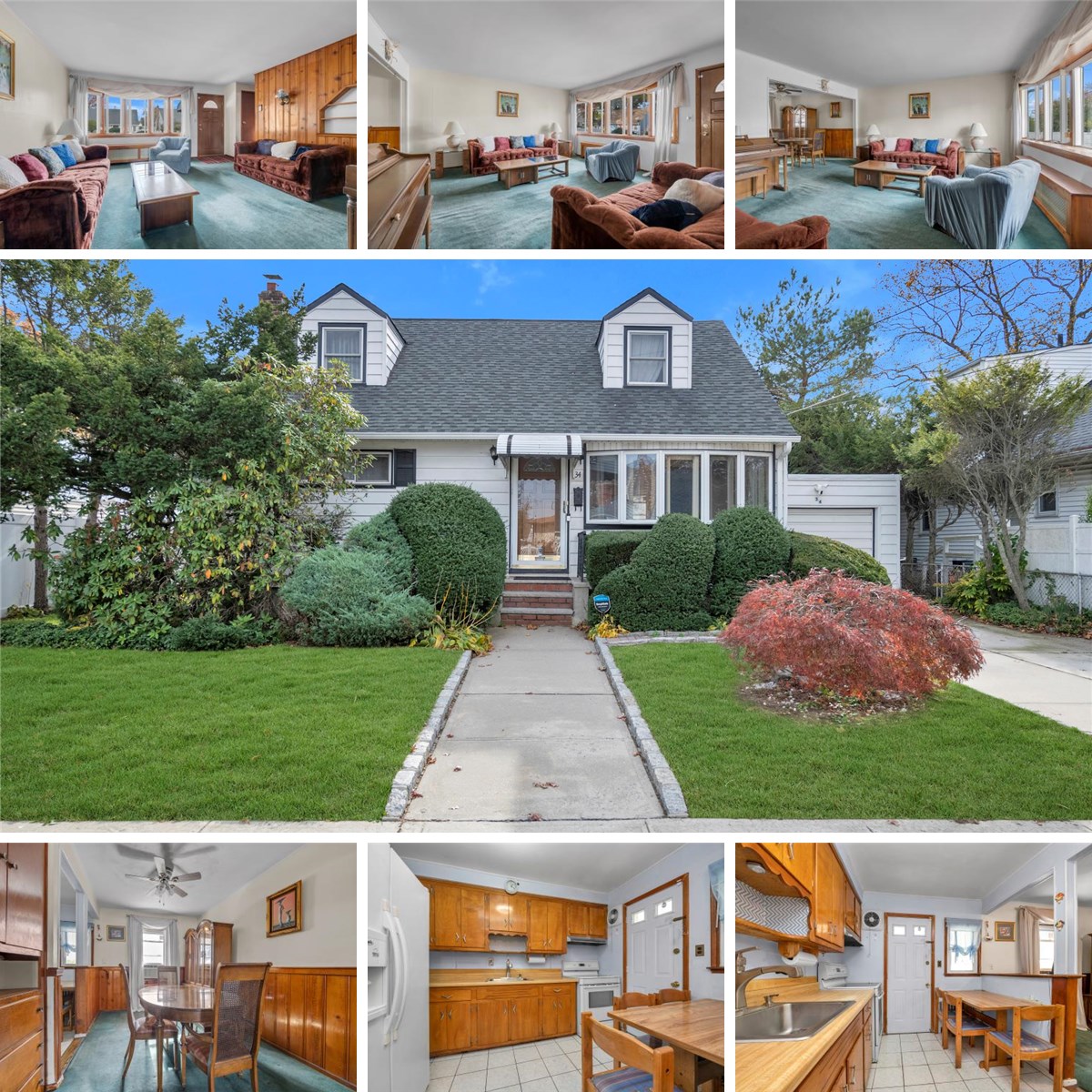 Charming and beautifully maintained Cape-style home on a quiet Hempstead block, offering great curb appeal, an attached garage, and a private back yard. The welcoming front entry opens to a bright living room with a large bay window that fills the space with natural light and highlights the comfortable, open feel of the main level. Just off the living room is a dedicated dining area, perfectly situated near the kitchen for easy everyday living and entertaining. The kitchen is well laid out with plenty of cabinet and counter space, and a window overlooking the yard adds to the home’s warm, inviting feel. Well-sized bedrooms provide flexible options for sleeping, home office, or guest space, and the home includes two full baths for added convenience. A versatile lower level offers additional living space ideal for a recreation room, media area, gym, or storage. Outside, enjoy a nicely landscaped property with a private backyard, green lawn, and outdoor dining. The long driveway and attached garage provide ample off-street parking. Located close to shopping, local parks, schools, and major roadways, this home combines comfort, convenience, and classic Long Island charm. All information deemed reliable but not guaranteed; buyer and buyer’s agent to verify all information independently.