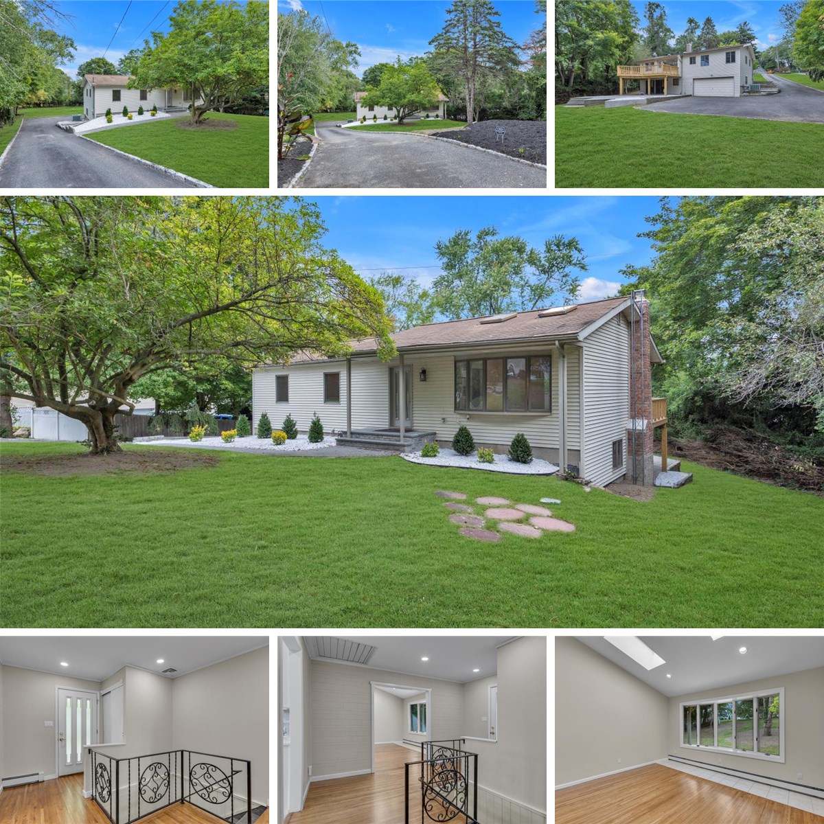 Hauppauge, Location, Location, Location! This fabulous Ranch-style home features lots of updates, is set back from the road and located with-in a desirable Cul de Sac on a sprawling .75 acre property. Enter the home thru the welcoming Entry Foyer that leads into the Formal Living Room with dramatic soaring/cathedral ceiling, 2 Skylights, hardwood floors and large Andersen, bay window over-looking front property. The Living Room flows into the Formal Dining room creating a relaxing entertaining area with open floor plan. The bright, NEW Stunning Eat-In Kitchen features White cabinetry, Quartz Counter tops, updated stainless steel appliances, beautiful tile backsplash, expansive window over-looking the scenic backyard and door to the convenient, outside deck. Continuing on the first floor is the Primary Bedroom En Suite with full bathroom, Closet w/built-ins, plus 2 addl Bedrooms w/closet built-ins and Hall Full Bathroom. Hardwood floors thru-out most of the 1st floor. The light filled lower-Level features a walk-out Family Room, wall of windows and sliders leading out to the backyard and patio. The center piece of this large Family room is a stone-faced fireplace that creates a warm and inviting atmosphere, perfect for cozy evenings. Lower level also features 2 large storage closets, convenient Laundry Rm/Powder Room and Entrance into the 2 Car Garage and Utility Rm. The gorgeous, oversized 3/4 acre property is landscaped and backyard features paver patio, entertaining and play areas plus plenty of room for a pool. Additional amenities include Central Air Conditioning, Andersen windows, Skylights, High Hats, Bedroom Closets w/custom built-ins, Updated 200 amp electrical service, updated burner and hot water heater, plus more!, This home is the perfect blend of function and comfort—don't miss your chance to make it yours!