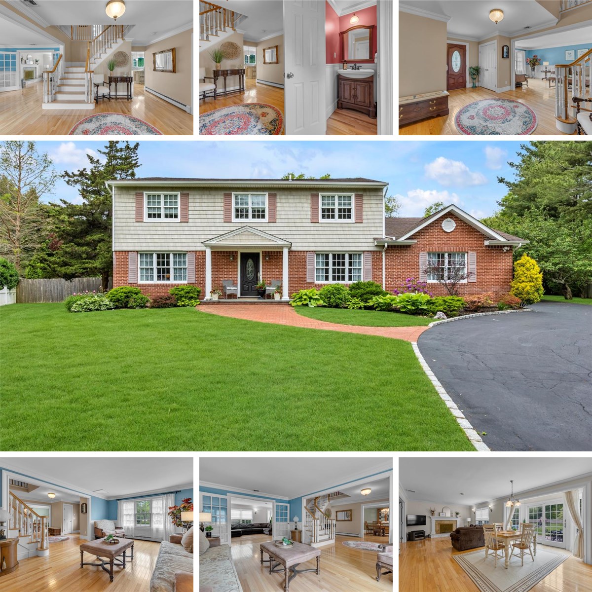 Nestled in the bell of a tranquil cul-de-sac, this spacious 5br/3.5bth Colonial offers an ideal blend of comfort and privacy in the desirable Harborfields school district. The residence boasts an extensive layout that invites both relaxation and entertaining. The open floor plan showcases exquisite custom moldings and solid hardwood floors throughout. High ceilings and large windows allow natural light to flood the interior, enhancing the warm atmosphere of home. The gourmet kitchen features stainless steel appliances, farmhouse sink, double oven, abundant granite counterspace and a center island with a built-in microwave. Mudroom/Laundry area located on the main floor with access to the back yard. The home offers a unique living arrangement with converted two-car attached garage, now transformed into a charming guest suite – perfect for extended family and guests. Additionally, a detached two-car garage was thoughtfully added, providing ample space for vehicles, hobbies and storage. The oversized driveway not only accommodates multiple vehicles comfortably but also showcases the generous nature of the residence. The finished basement expands the living space, offering a versatile area perfect for a recreation room, home office, gym, or media center. Step outside to your private backyard oasis on a shy acre, where a separately fenced built-in pool offers a secure and serene retreat. Ample space for entertaining, outdoor play, and includes a dedicated basketball court for hours of fun. With the perfect balance of indoor and outdoor living, it's a rare gem in the market that combines elegance, functionality, and convenience. Don’t miss your chance to own this delightful abode. Make it your forever home today!